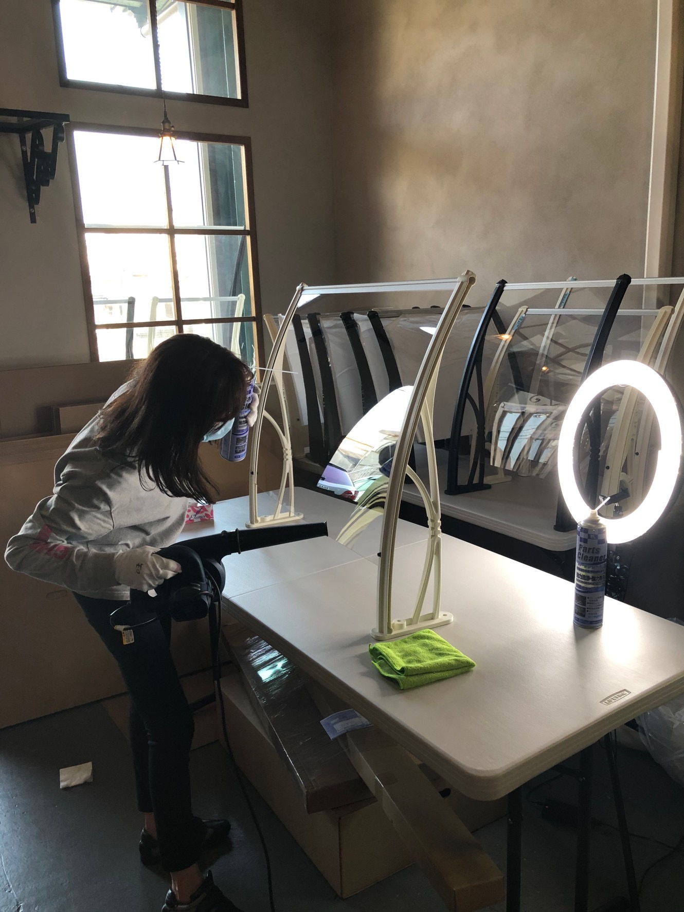 この注文の山を見て、みなさんコロナ収束後の対応をいろいろ考えてくださっているのがわかります。飛沫シールドは今や店舗や受付には必須アイテムとなりました。