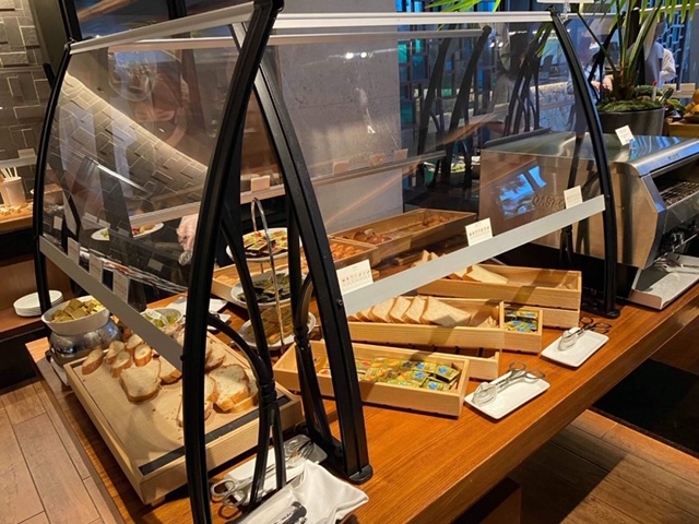 コロナ禍で朝食ビュッフェをお休みされていたそうですが、なんと、ヒサシールドの設置によりビュッフェ形式のお食事サービスが復活されました!